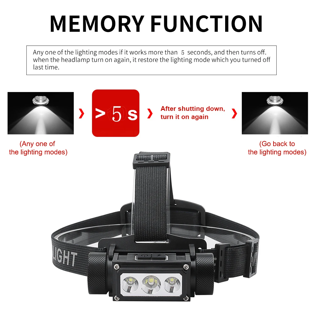Product Name: BORUiT B39 LED phare XM L2 + 2 * XP G2 Max.5000LM phare 21700 18650 TYPE C Rechargeable tête torche Camping chasse lampe de poche