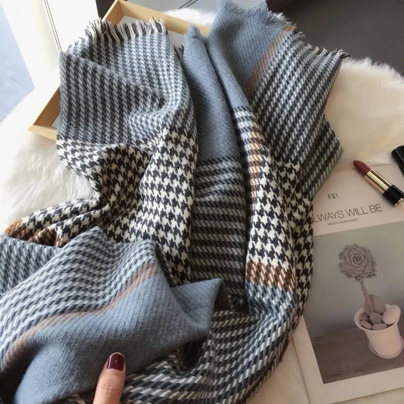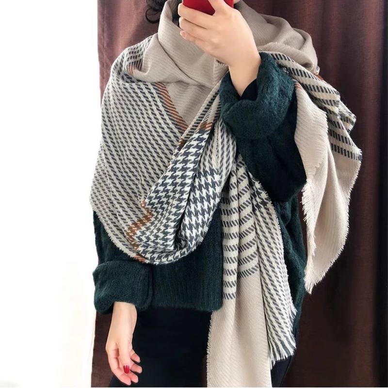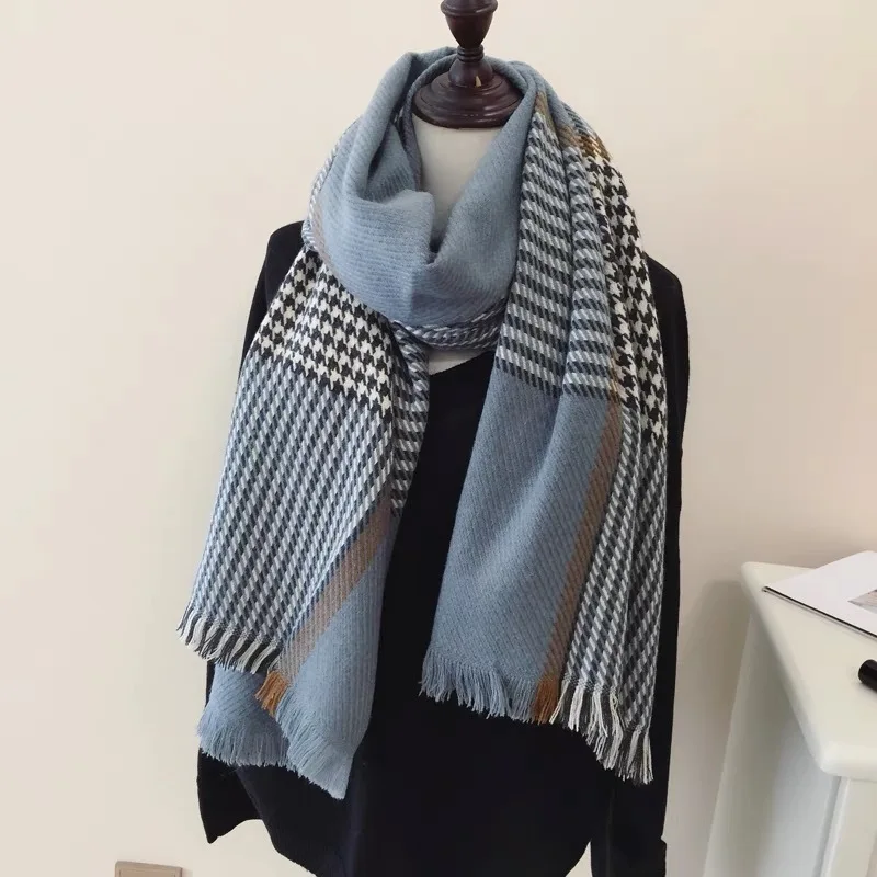 Product Name: Écharpe en cachemire femmes 2018 hiver écharpe hommes pied de poule impression longue chaud châle dames Plaid élégant Pashmina