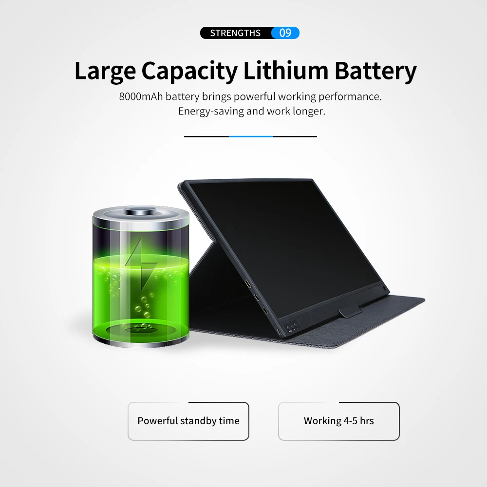 Product Name: T bao écran tactile moniteur Portable 1920x1080 HD IPS 15.6 pouces moniteur d affichage 8000mAh batterie Rechargeable avec étui en cuir