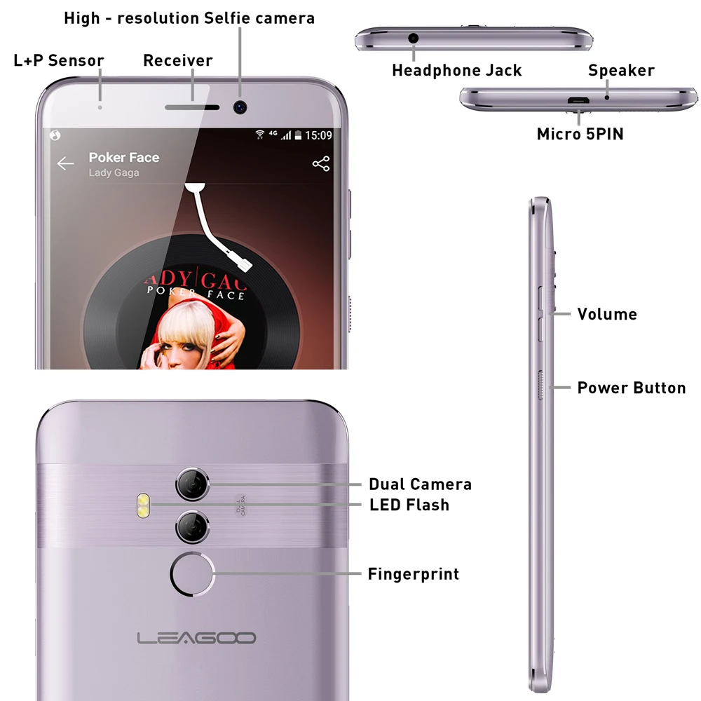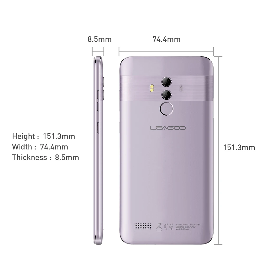 Product Name: LEAGOO T8s téléphone intelligent avec identification faciale 5.5 FHD Incell RAM 4GB ROM 32GB Android 8.1 MT6750T Octa Core 3080mAh téléphone portable avec double caméra 4G