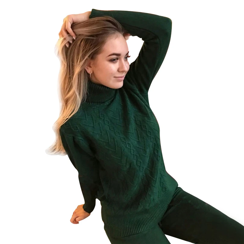 Special Offer MVGIRLRU femme pull costumes torsadé tricoté ensembles col roulé pull femme et pantalon deux pièces tenues femme Discount 40% Today!