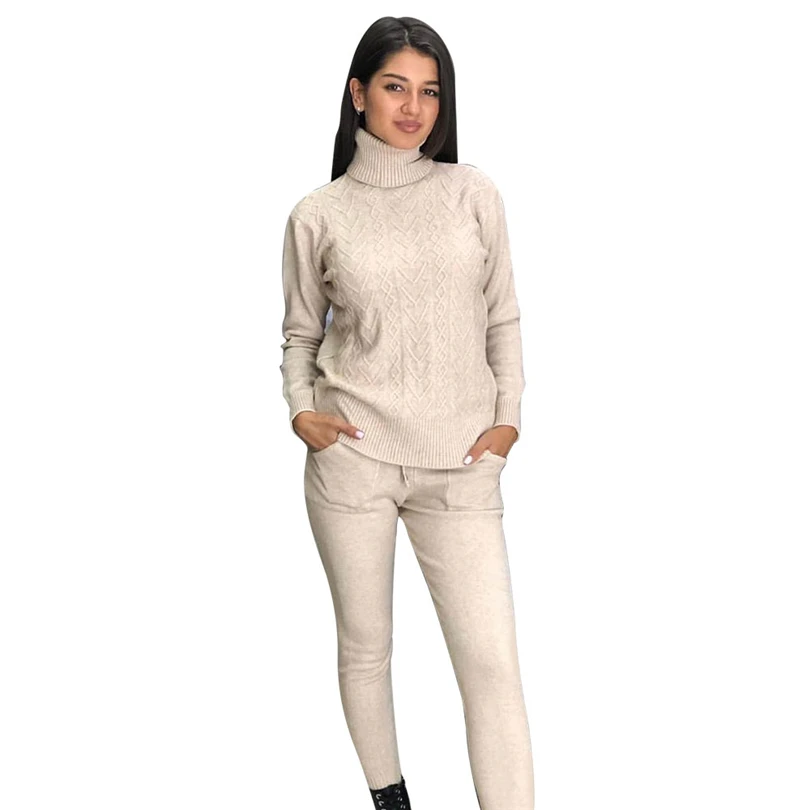 Product Name: MVGIRLRU femme pull costumes torsadé tricoté ensembles col roulé pull femme et pantalon deux pièces tenues femme
