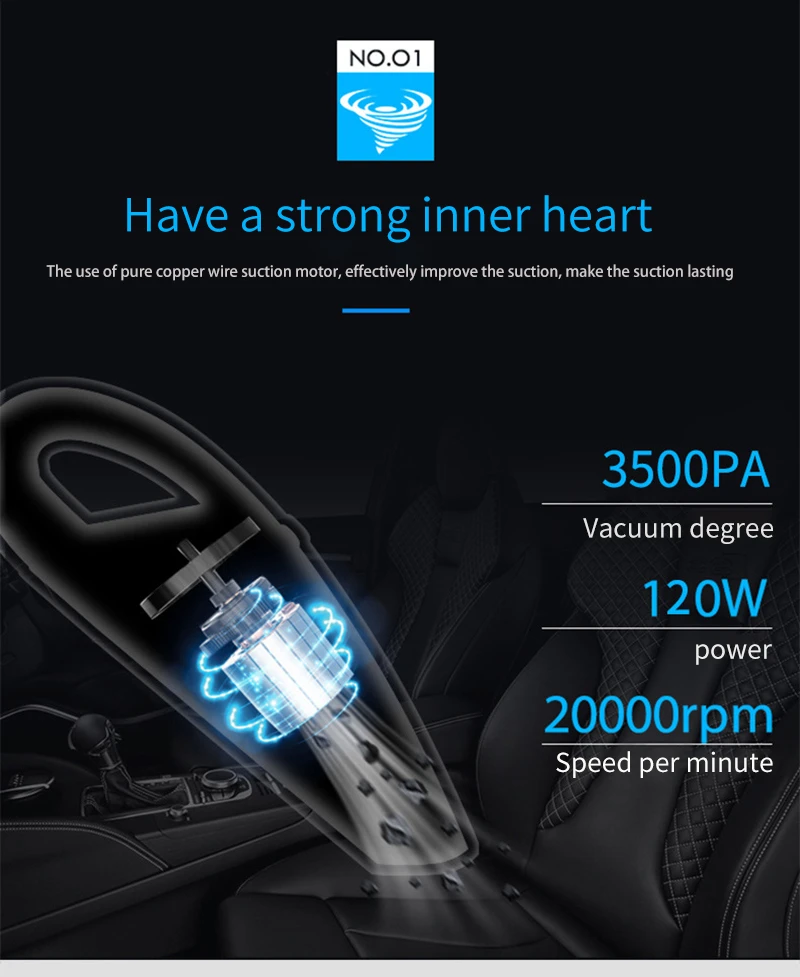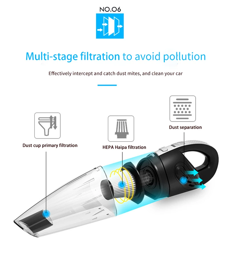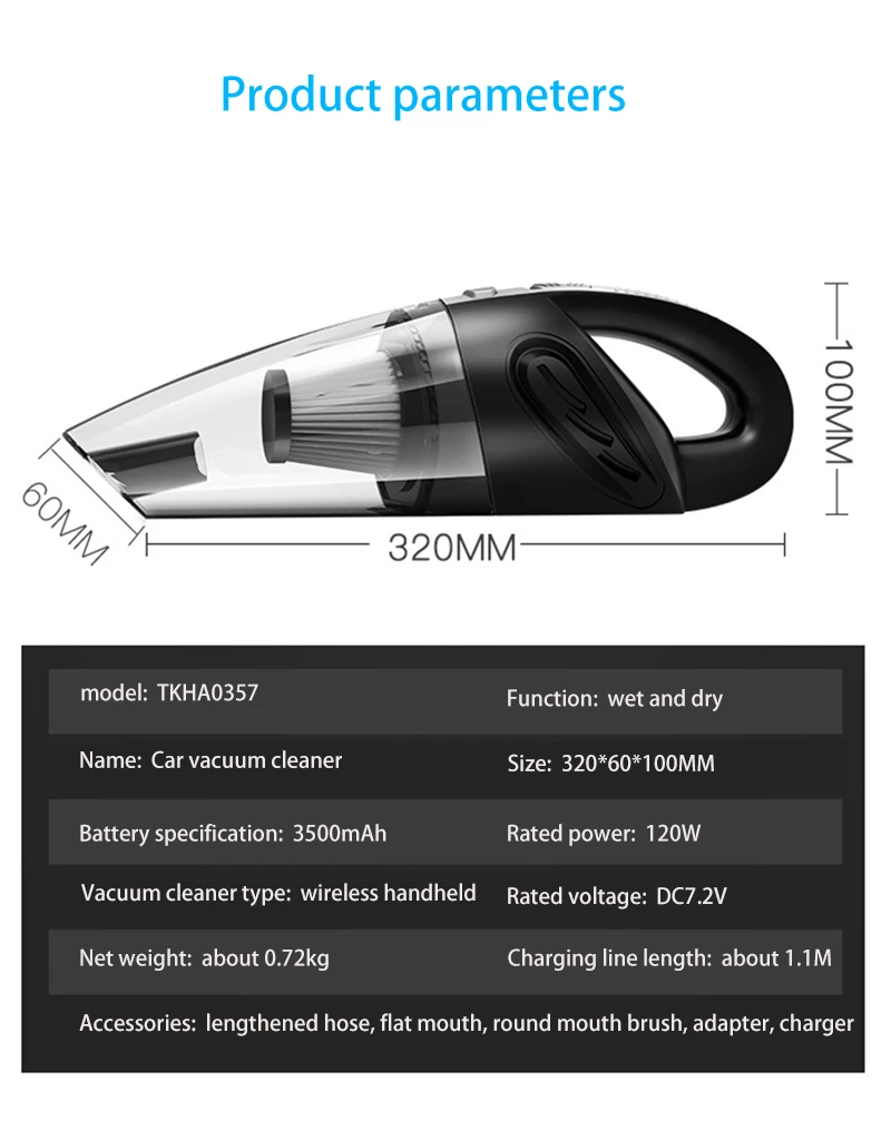 Product Name: Aspirateur de voiture de puissance forte de 4800pa cc 12 volts 120W avec le sac à main 4.8KPA aspirateur portatif automatique humide sec cyclonique 2 HEPA