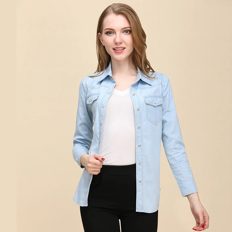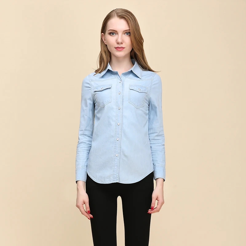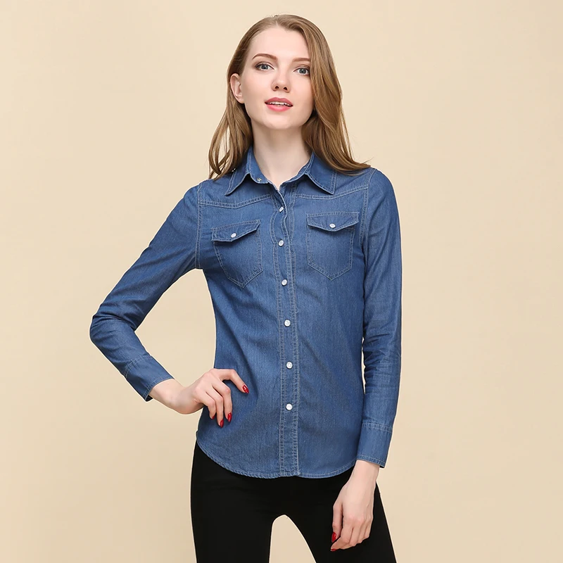 . (8% Off) Achat Nouvelle 2018 Printemps Femme Denim Chemise Style De Mode À Manches Longues Casual Chemises Femmes 2 Couleurs Blouses Plus La Taille Blusa Jeans Feminina Pas Cher Prix.