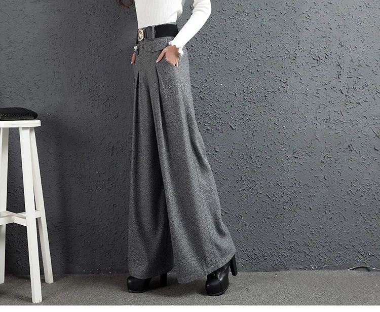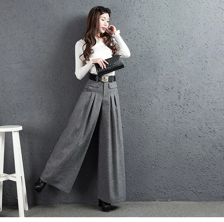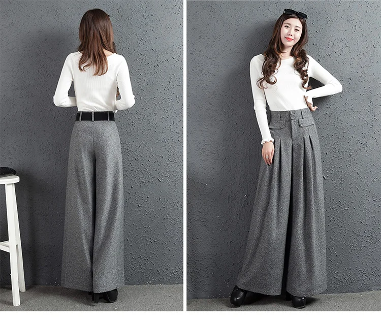 Special Offer Pantalon Palazzo automne hiver nouveau sud coréen tissu à jambes larges hauteur pantalon droit gris femmes pantalon en laine Discount 15% Today!