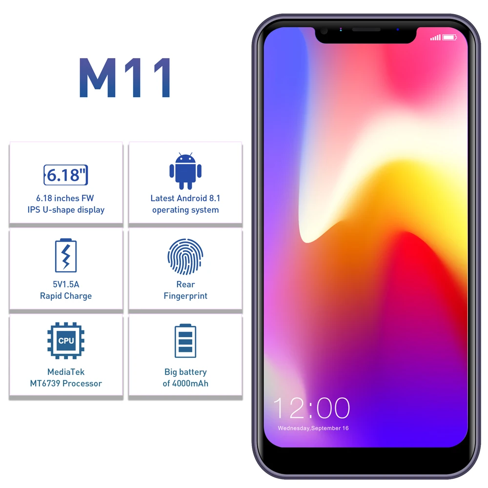 Product Name: Téléphone portable d origine avec empreinte digitale LEAGOO M11 4G 6.18 \"double SIM Android 8.1 Quad Core 2 GB RAM 16 GB ROM 4000 mAh Smartphone avec identification faciale