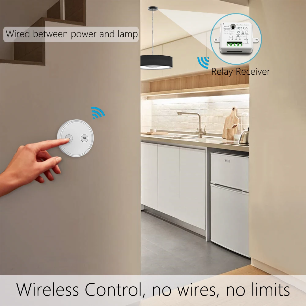 Product Name: Interrupteur de lumière sans fil à télécommande 220V avec minuscule Module de relais interrupteur mural magnétique ou être Portable portée 200m facile à installer