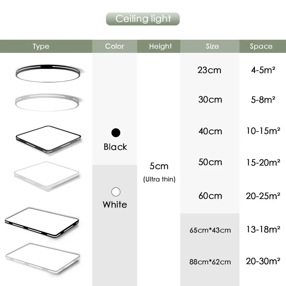 Product Name: Plafond moderne à LEDs lampe luminaire montage en Surface encastré télécommande Dimmable 18W 48W salon chambre balcon