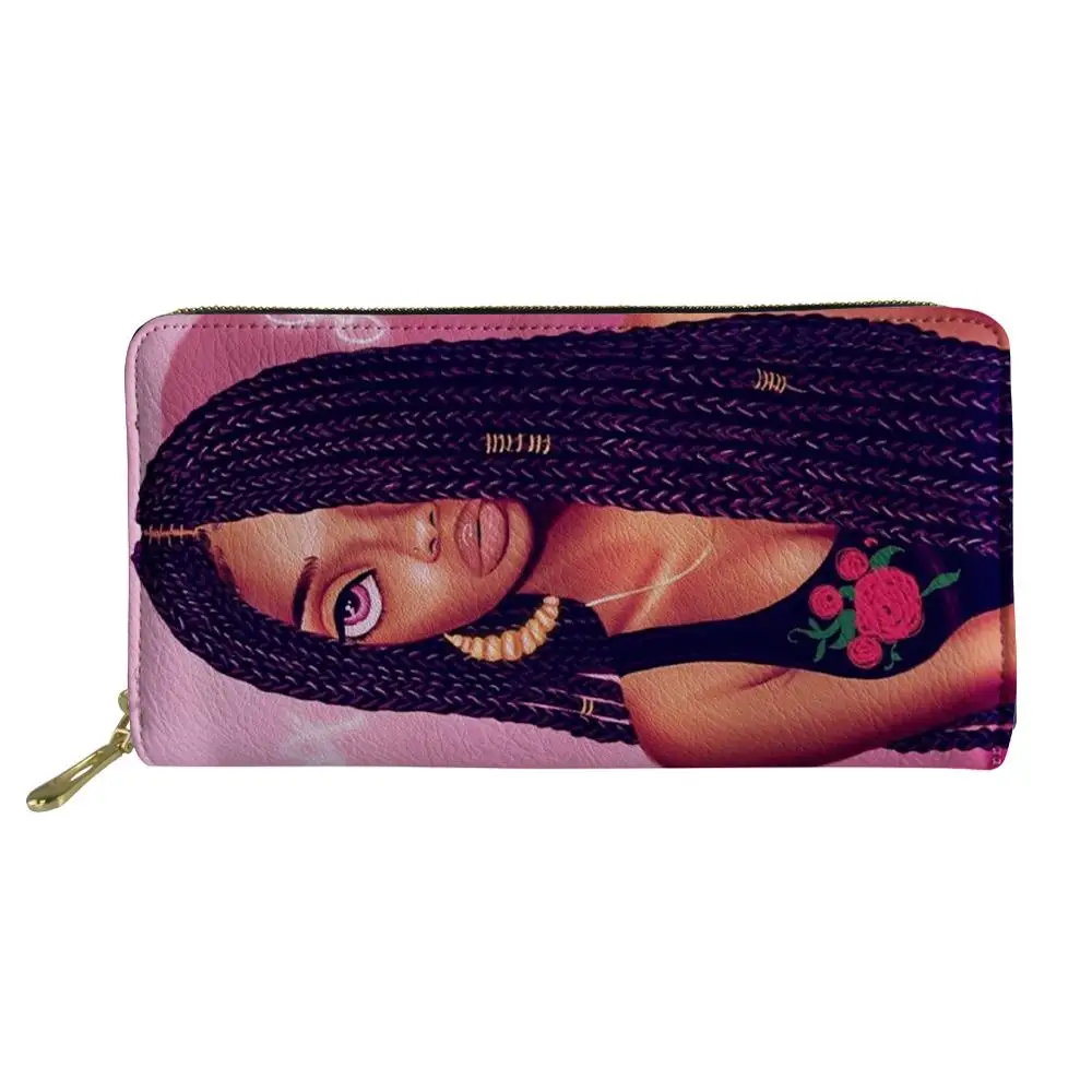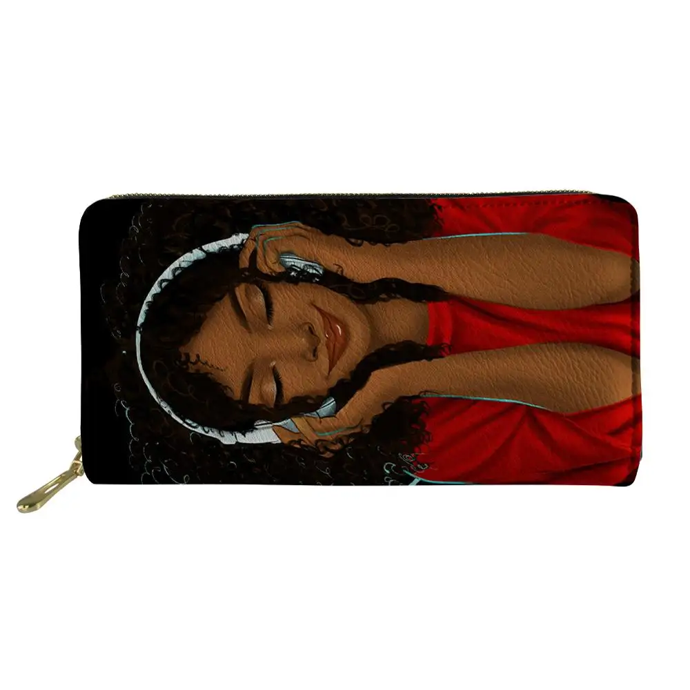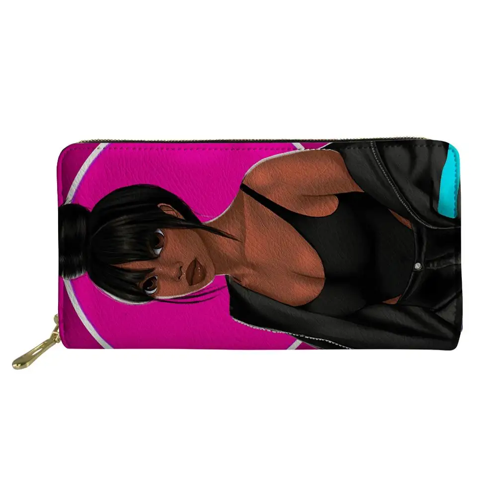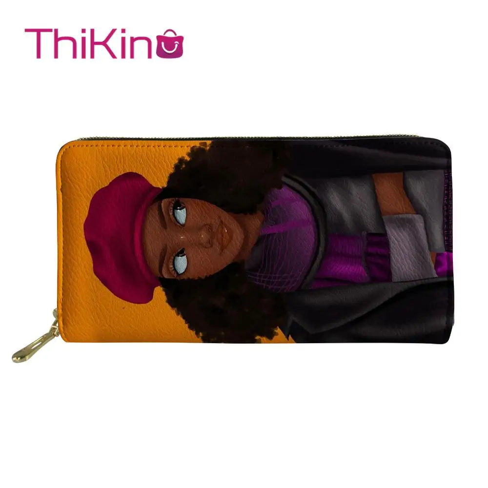 Product Name: Thikin Afro américain princesse noir fille Zipper téléphone sac porte carte pour dames embrayage sac à main Carteira sacs à main Notecase 2019