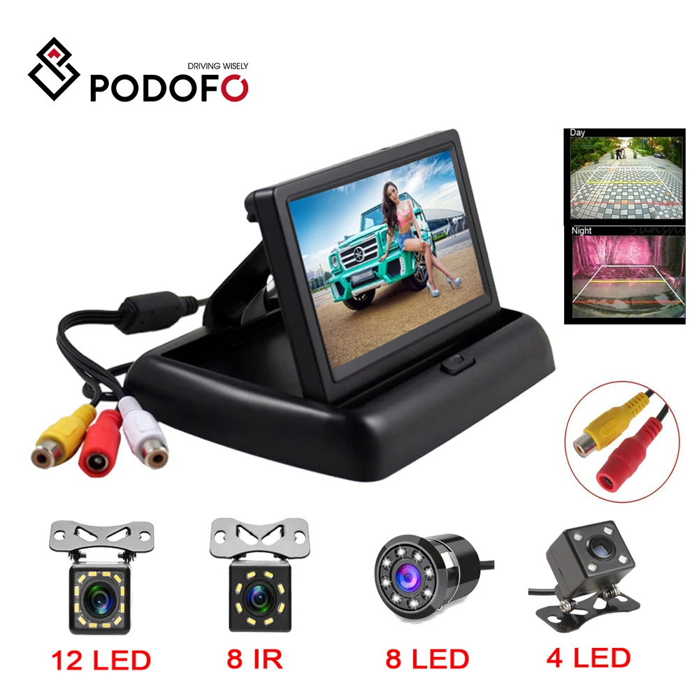 Special Offer Podofo 4.3 pouces HD pliable voiture vue arrière moniteur inversion LCD TFT affichage avec Vision nocturne caméra de recul pour véhicule Discount 29% Today!
