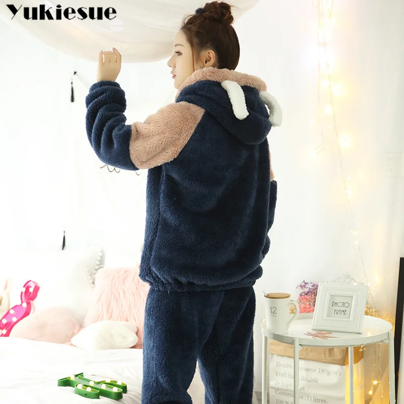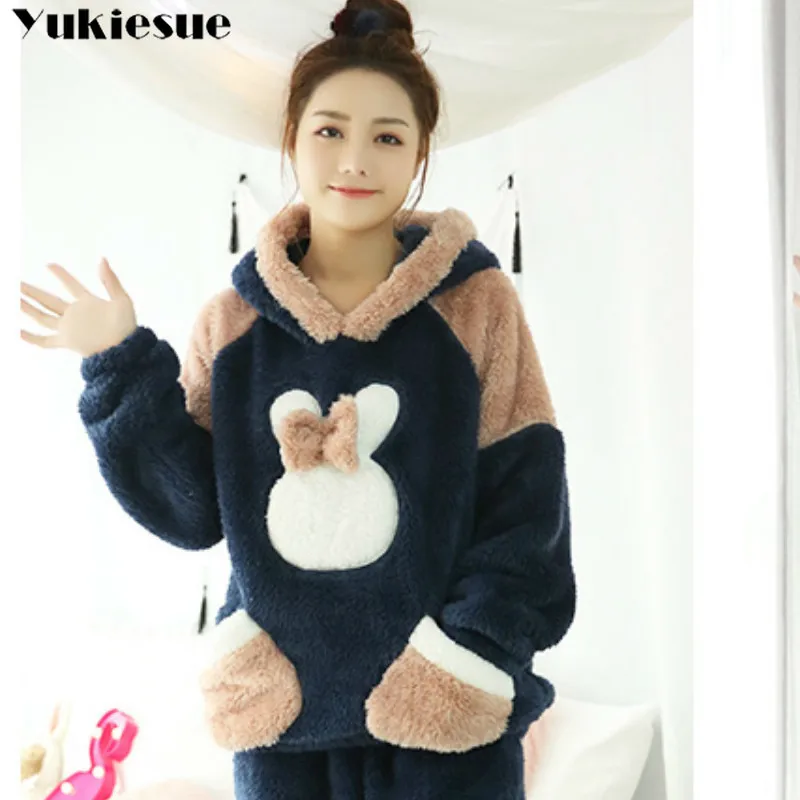 Special Offer 2018 nouveau automne hiver femmes flanelle Pyjamas ensemble ours à capuche Pyjamas vêtements de nuit corail polaire épaissi chaud Pyjamas maison vêtements Discount 35% Today!
