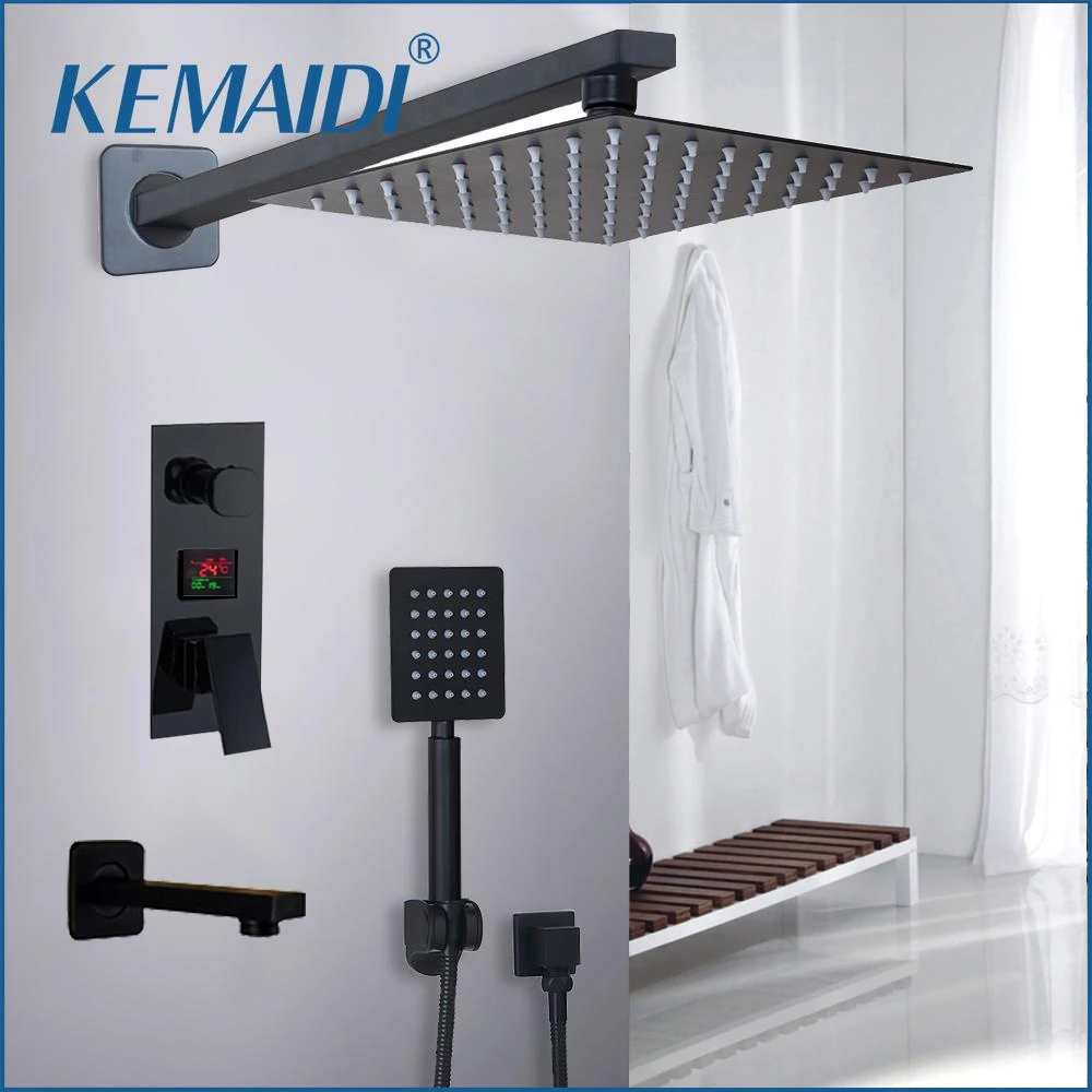 Special Offer KEMAIDI robinet de douche de salle de bain 3 fonctions noir robinets de douche numérique Set pomme de douche à effet pluie robinet mitigeur à affichage numérique 2 voies Discount 45% Today!