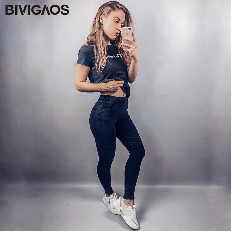 Special Offer BIVIGAOS printemps nouveau 2018 bavures jambes brodées lettres lavé Jeans Leggings Skinny jegging Slim tissé pantalon crayon pour les femmes Discount 27% Today!