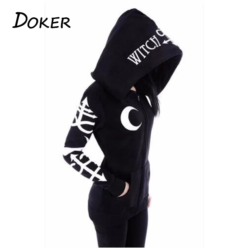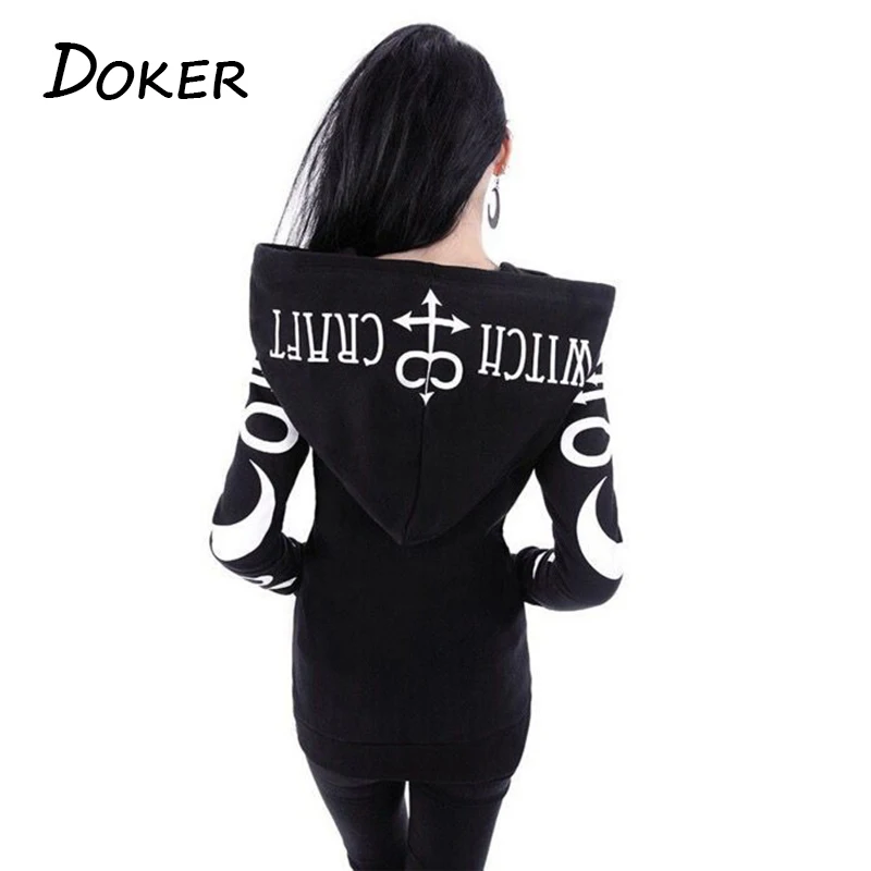 Special Offer Sweat à capuche pour femme gothique Punk lune lettre imprimer Sweatshirts 2018 automne hiver à manches longues noir veste Zipper manteau veste à capuche décontractée 5XL Discount 45% Today!