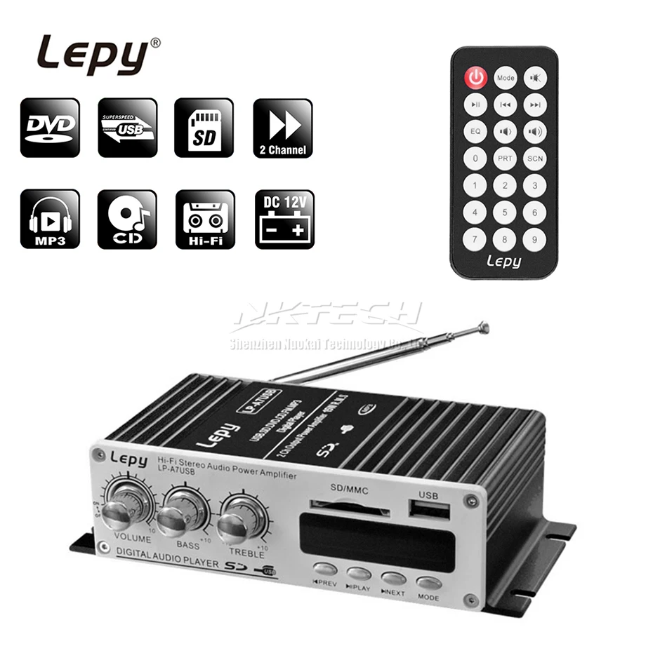 Product Name: LP A7 USB Lepy lecteur numérique Bluetooth 4.2 Version voiture puissance Hi Fi stéréo amplificateur Audio 2CH 20W RMS maison ampli SD CD DVD MP3 FM
