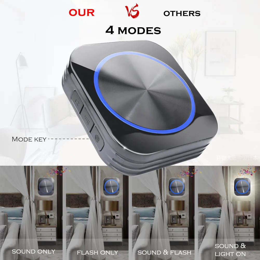Product Name: YIFAN auto alimenté sans fil sonnette sans batterie étanche 150M à distance ue Plug maison porte sonnette carillon anneau 1 2 bouton 1 2 récepteur