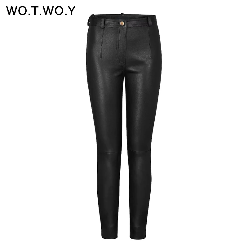 Special Offer WOTWOY automne hiver taille haute en cuir pantalon femmes polaire PU cuir pantalon femmes poches décontracté noir crayon pantalon 2018 Discount 45% Today!