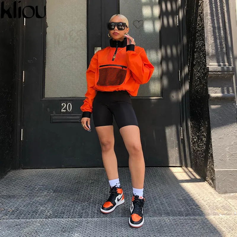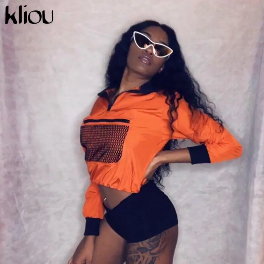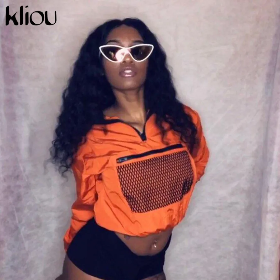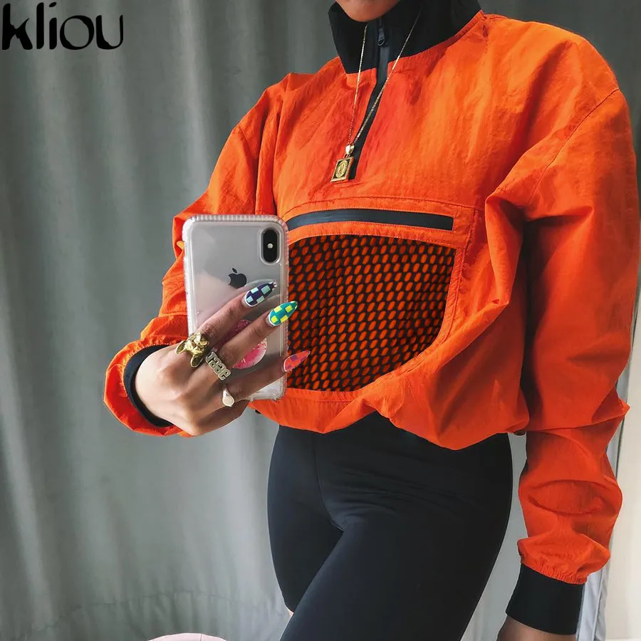 Product Name: Kliou manches longues maille poche Patchwork col Zipper T shirt 2018 été automne femmes mode lâche décontracté femme sweat