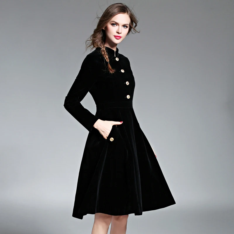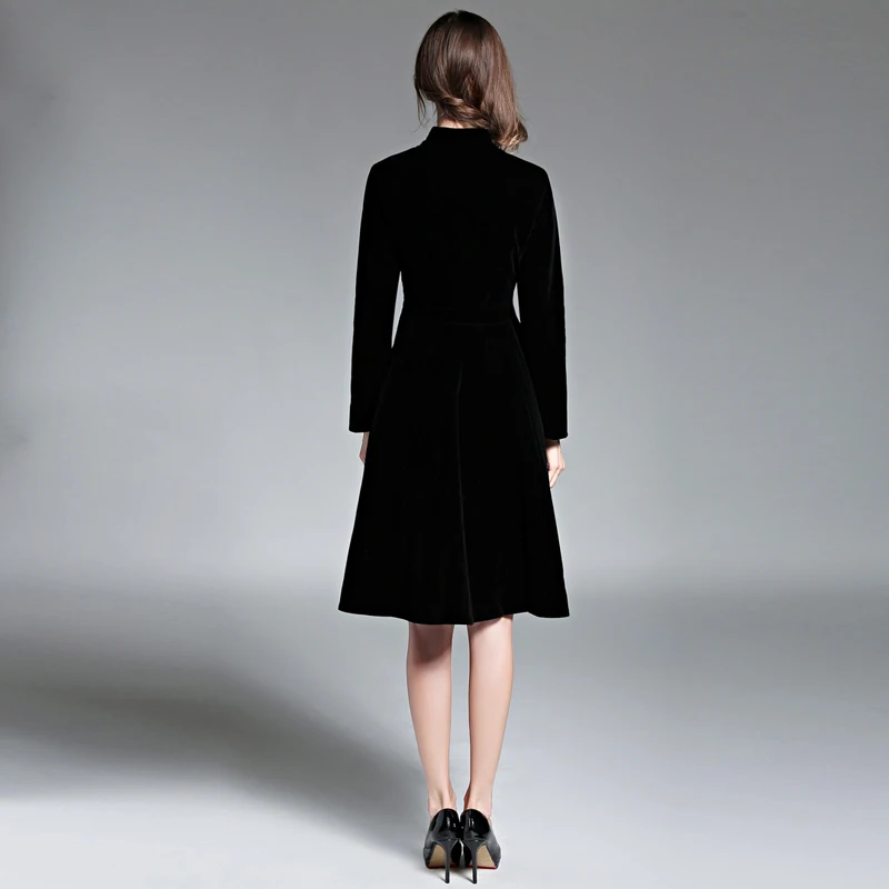 Product Name: Robe d hiver élégante en velours noir robes rétro femmes 2018 Audrey Hepburn à manches longues dames Robe de bureau Vestidos Robe D7D221C