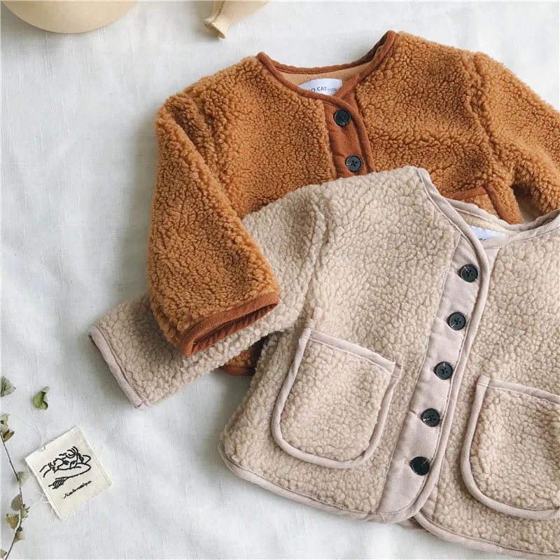 Product Name: 2018 automne hiver nouveauté Version coréenne couleur pure laine chaude mode épaissie manteau pour mignon doux bébé filles et garçons