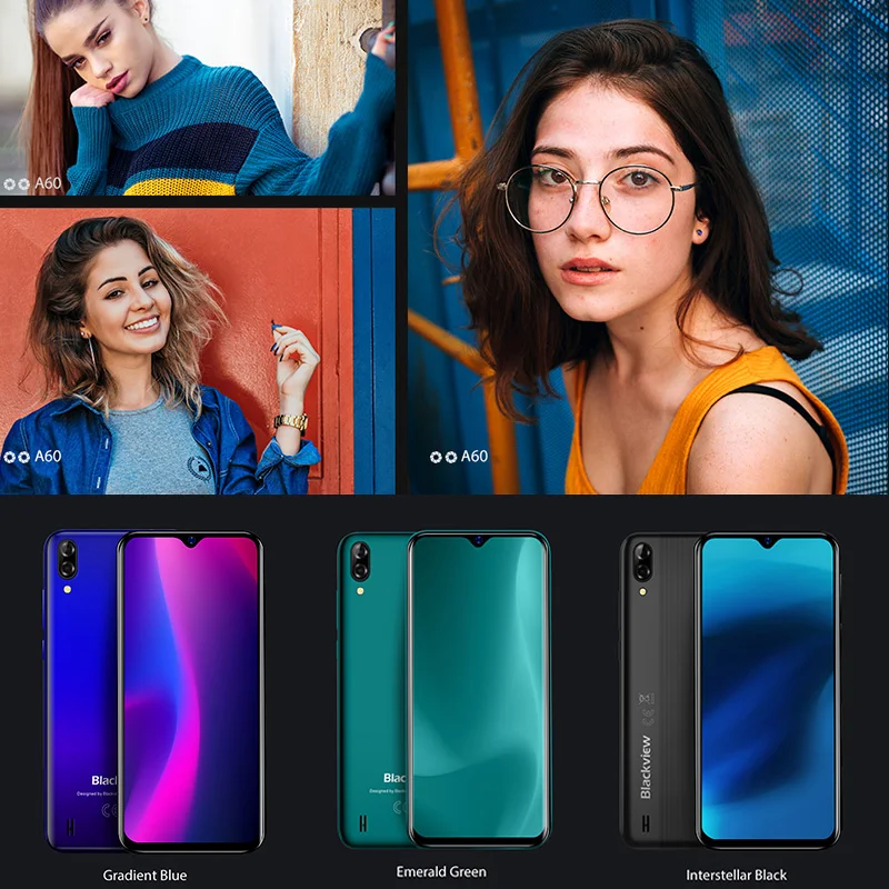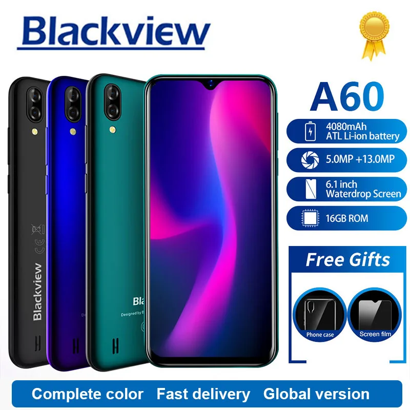 Product Name: Blackview A60 Smartphone 4080mAh 1GB + 16GB Quad Core Android 8.1 6.1 pouces 19.2 9 écran 13.0MP double caméra arrière 3G téléphone portable