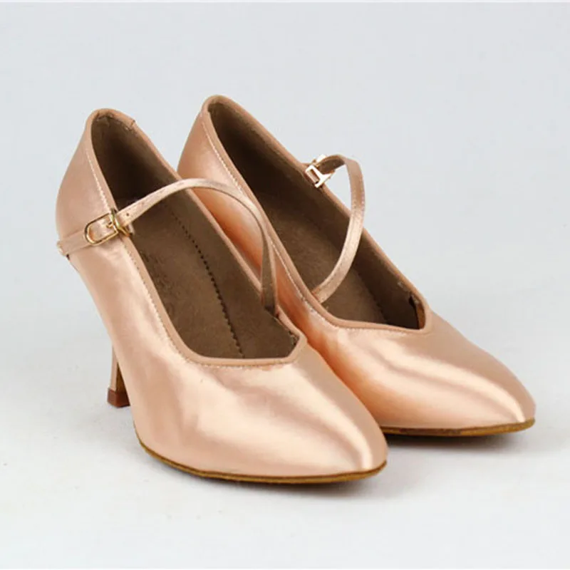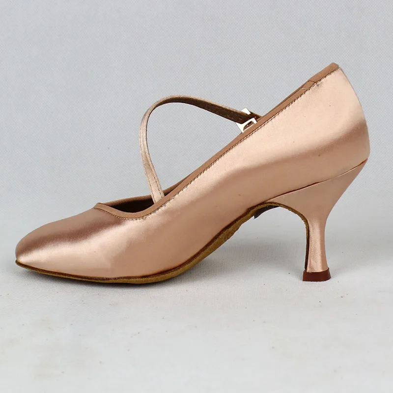 Product Name: Femmes chaussures de danse Standard BD 138 classique frais Tan Satin haut talon bas dames chaussures de danse de salon doux semelle extérieure danse moderne
