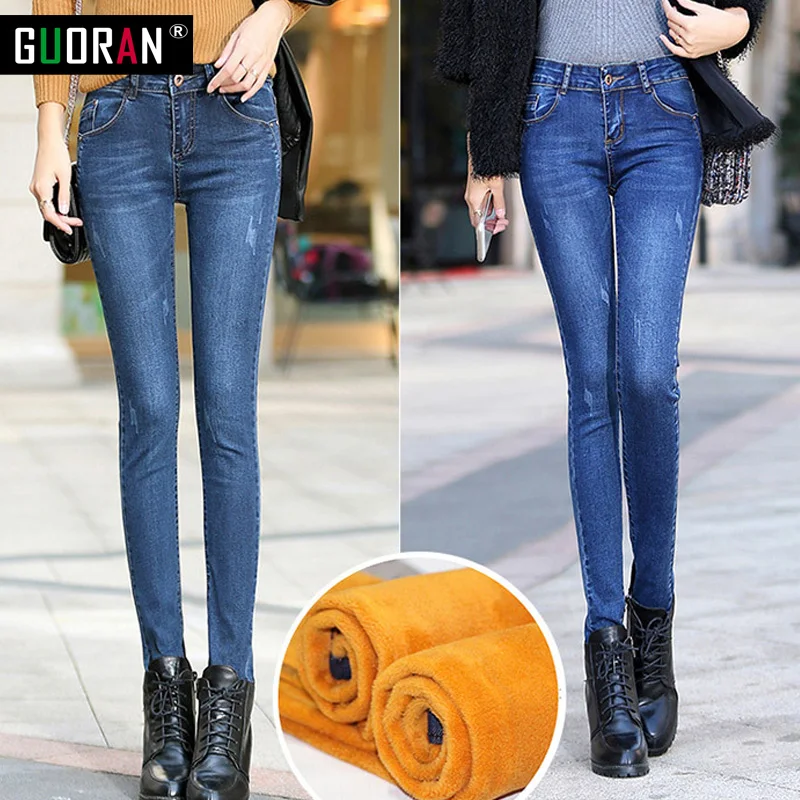 . (35% Off) Achat Hiver Jeans femme 2018 chaud femme crayon pantalon dames grande taille Slim pieds Jeans longs pantalons femmes Jeans femme grande taille Pas Cher Prix.