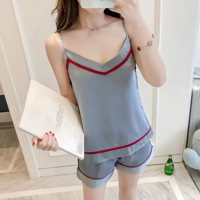 Product Name: Femmes Pyjamas ensemble Sexy Satin vêtements de nuit sommeil salon soie Pyjamas femmes v cou femmes vêtements de nuit casual Pijama 2 pièces été