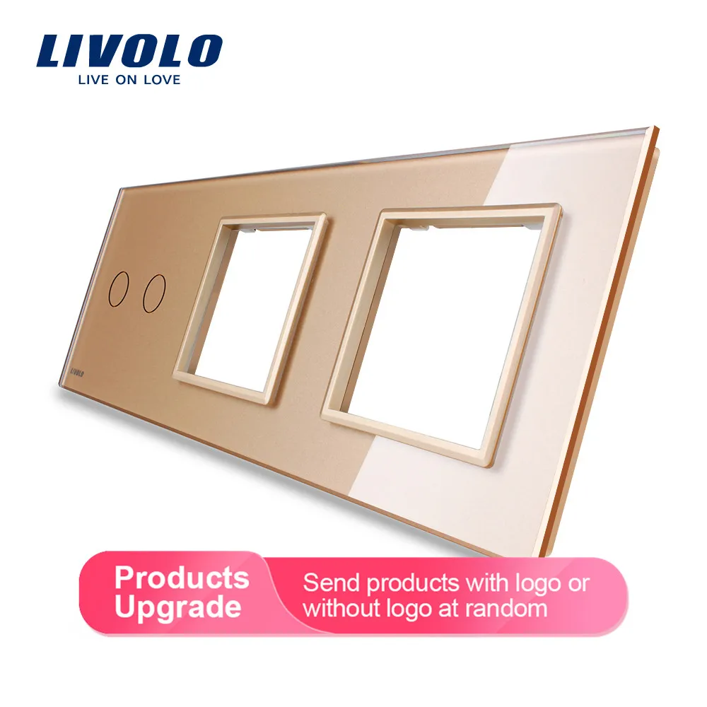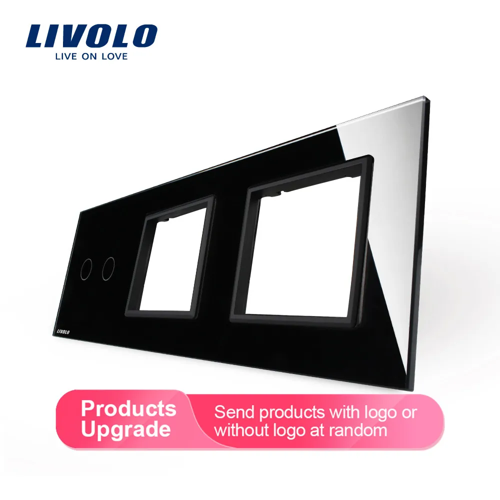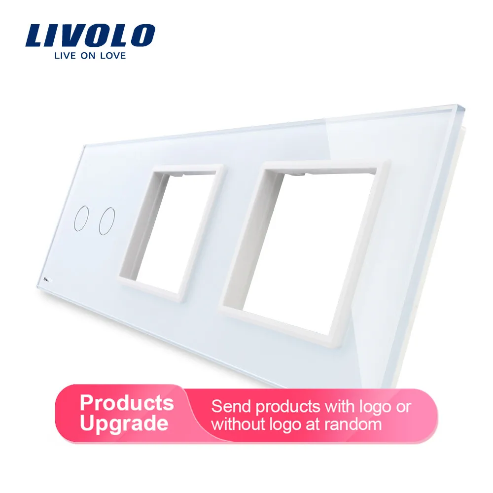 Product Name: Livolo blanc perle cristal verre, 222mm * 80mm, norme ue, 2Gang 2 cadre panneau de verre, VL C7 C2 SR SR 11 (4 couleurs)