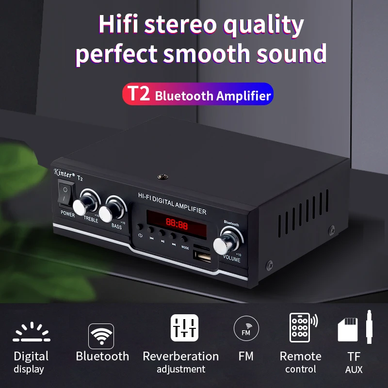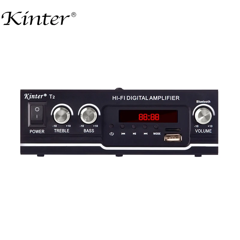 Product Name: Kinter T2 Hifi voiture amplificateur Audio 2.0CH 20W son stéréo pour bluetooth USB TF entrée FM alimentation radio AC220V DC 12V noir
