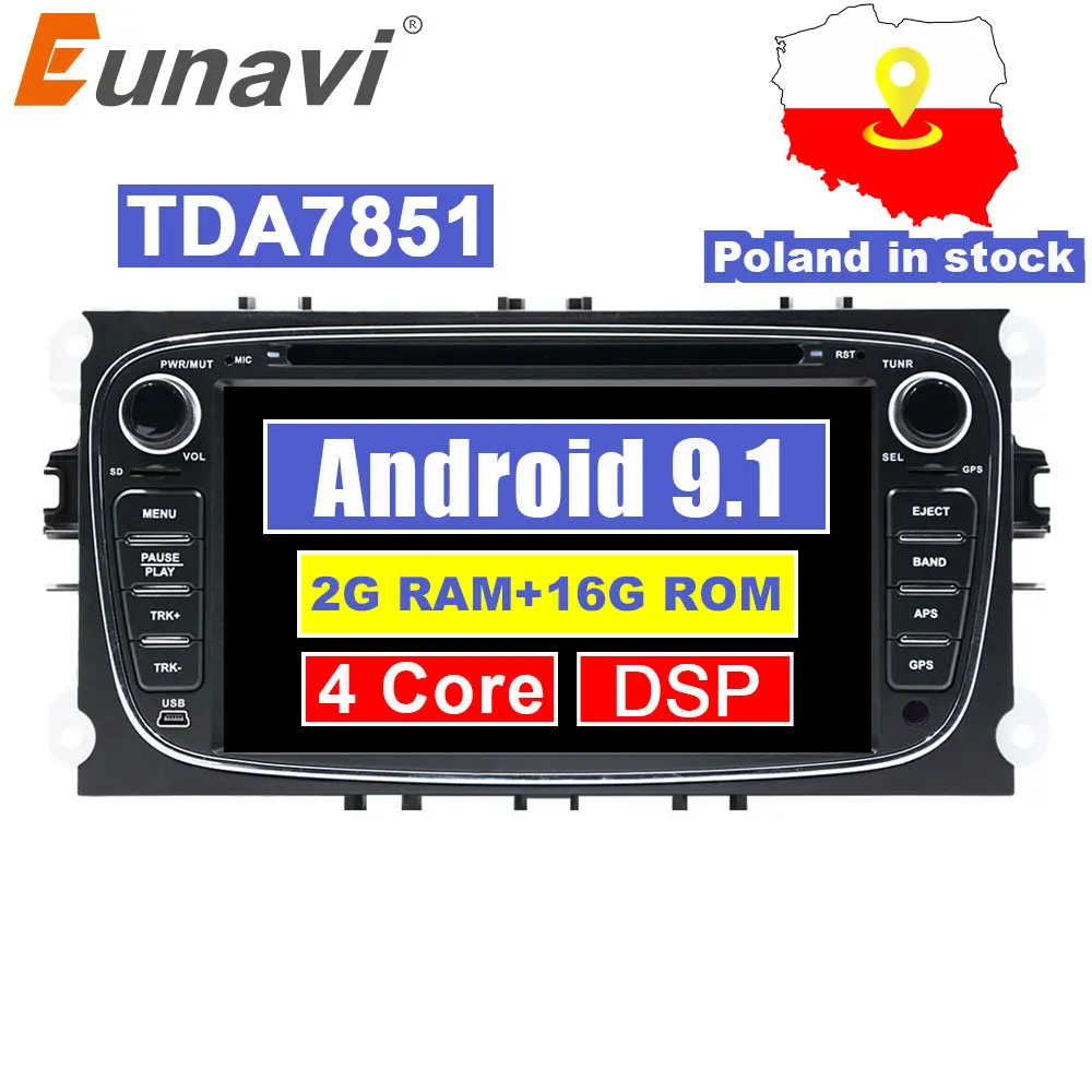 Product Name: Eunavi 2 Din 7 \"Android 9.1 voiture lecteur DVD Radio en ligne cartes GPS Navigation WIFI pour Ford focus II Galaxy Transit tournéo Mondeo