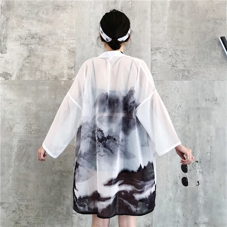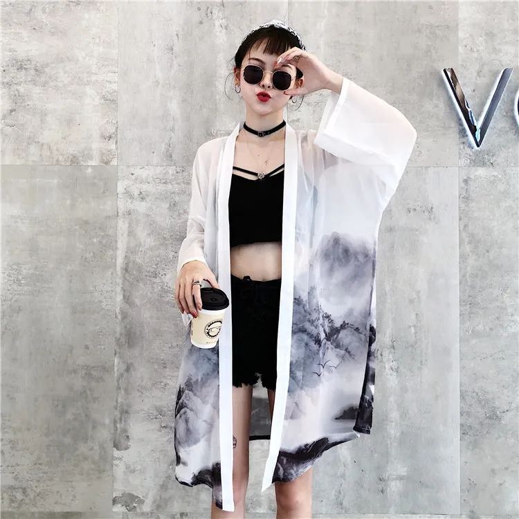Product Name: HARAJUKU style chinois impression chiffre 2018 été kimono cardigan feminino vêtements d extérieur protection solaire chemises femmes (B1849)