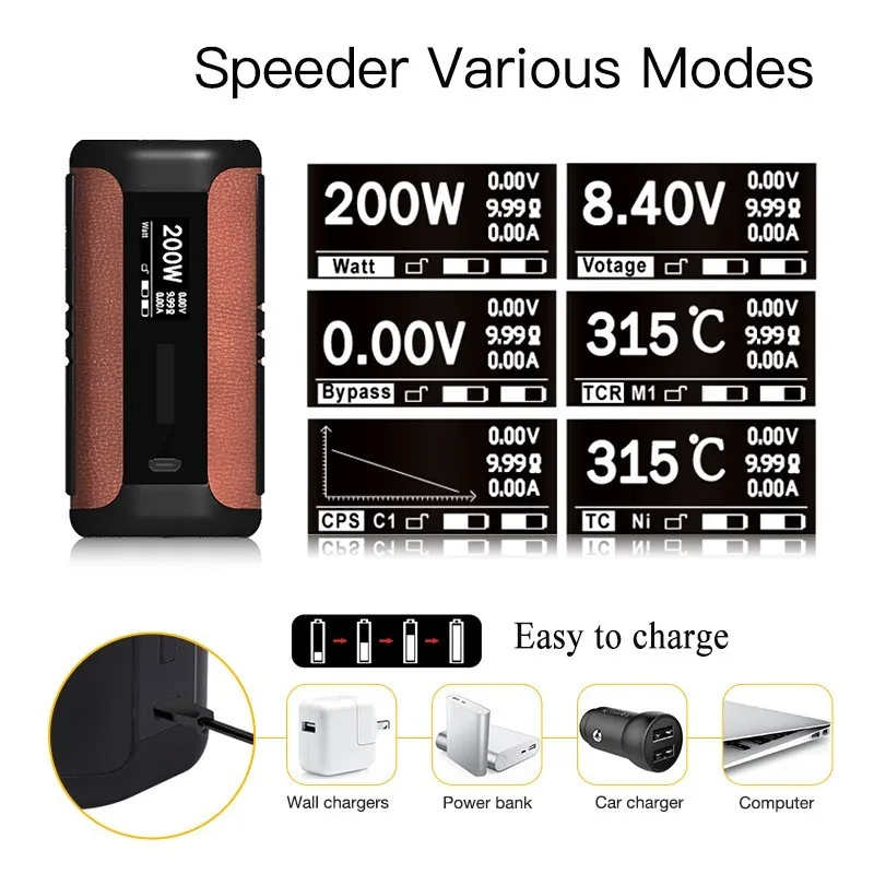 Product Name: Mods de cigarettes électroniques Aspire Speeder 200W boîte Mod Vape Mod Fit Athos réservoir 510 fil sans 18650 batterie e cigarettes mod