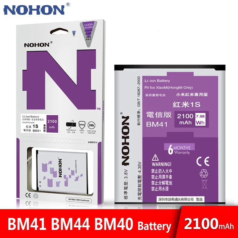 . (30% Off) Acheter Batterie d origine NOHON BM41 BM44 BM40 pour Xiaomi 2A Redmi Hongmi 1 1S 2 capacité réelle 2100mAh batterie de téléphone au détail Pas Cher En Ligne.