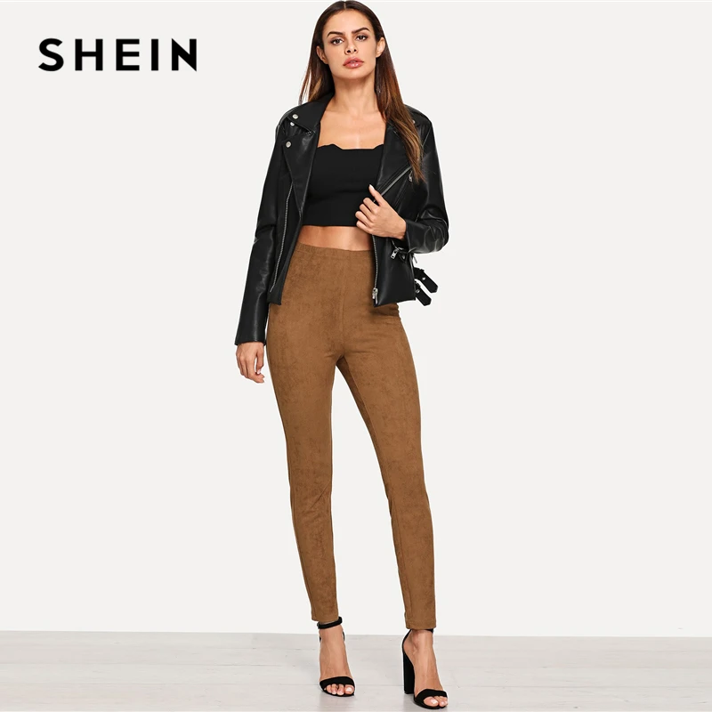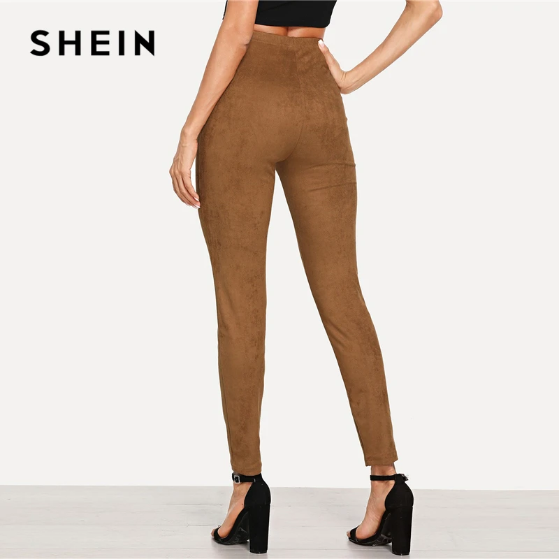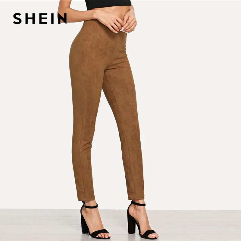 Special Offer SHEIN marron élégant bureau dame solide daim Skinny Leggings 2018 automne Highstreet vêtements de travail femmes pantalons pantalon Discount 40% Today!