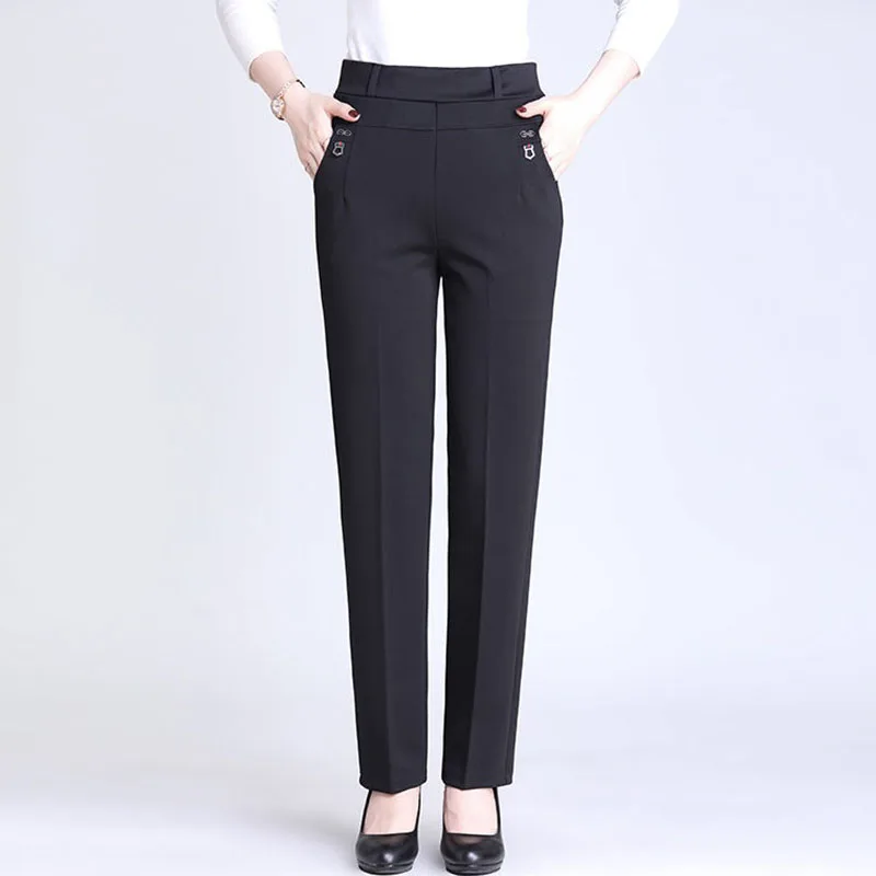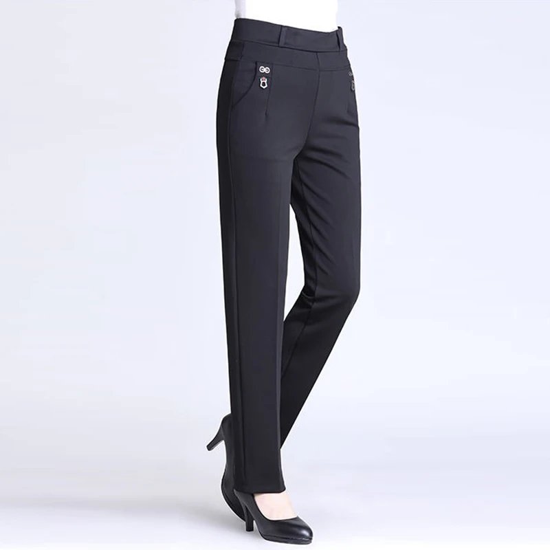 Product Name: Grande taille 5XL ajouter Velet maman pantalon 2018 couleurs solides taille haute décontractée femmes pantalon élastique lâche droite Atumn hiver pantalon