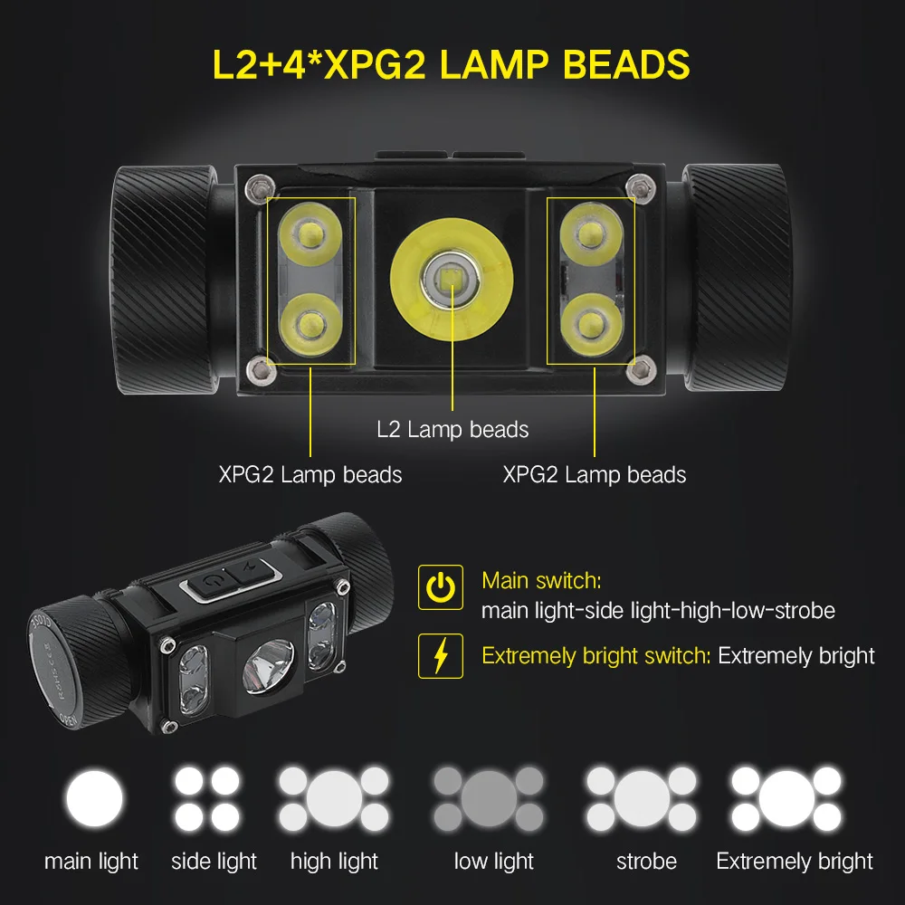 . (30% Off) Acheter BORUiT B50 LED phare XM L2 + 4 * XP G2 Max.6000LM phare 21700 18650 TYPE C Rechargeable tête torche Camping chasse lampe de poche Pas Cher Prix.