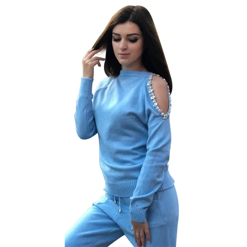 Product Name: Mveminru pull costumes diamant tricoté costume ouvert épaule manches pull hauts et pantalons femmes deux pièces ensembles