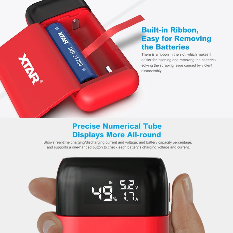 Product Name: XTAR chargeur de batterie externe PB2S QC3.0 type c entrée 2019 NEWST chargeur USB 21700 20700 18700 18650 batterie LCD chargeur de batterie rapide