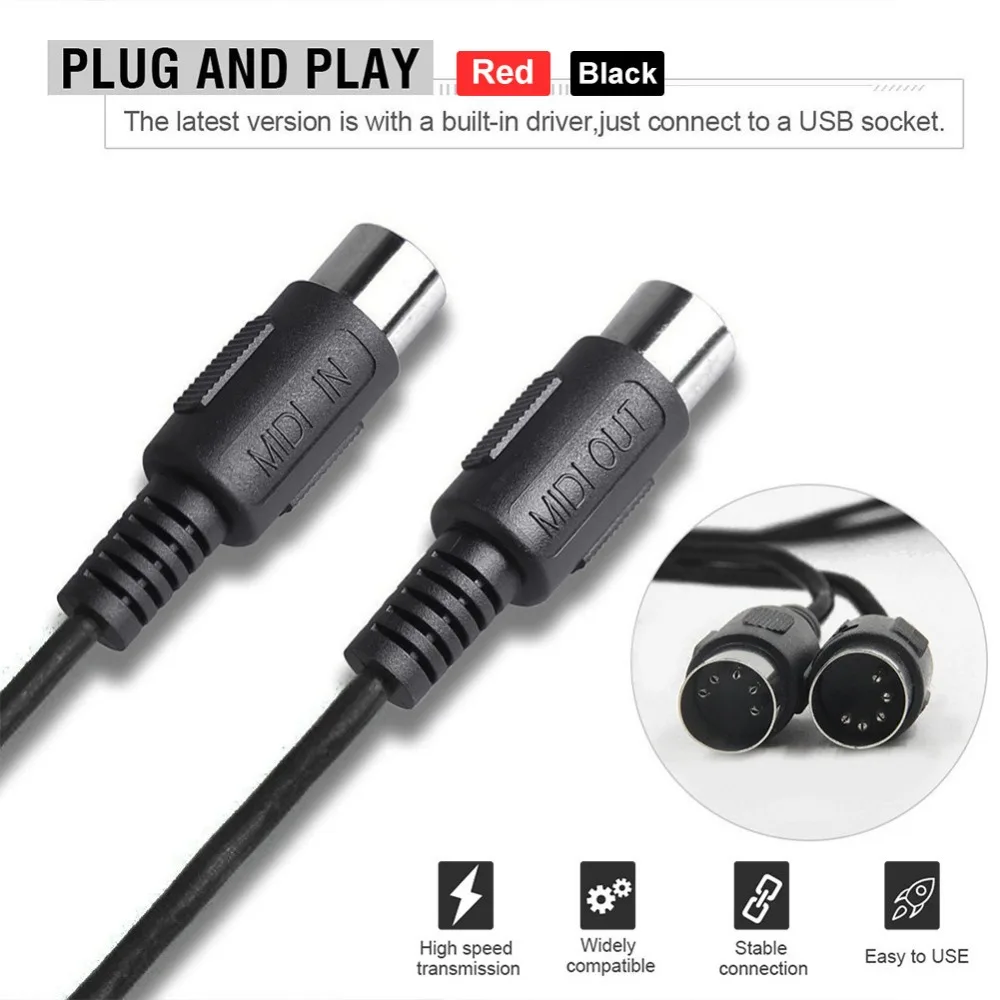 Product Name: Batterie de Piano électrique USB à 2 MIDI Interface adaptateur câble convertisseur pour PC musique clavier synthé adaptateur Windows Mac iOS 2 mètres