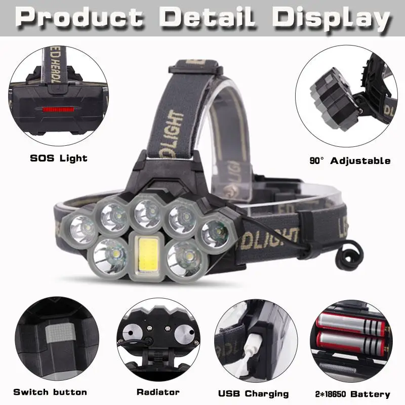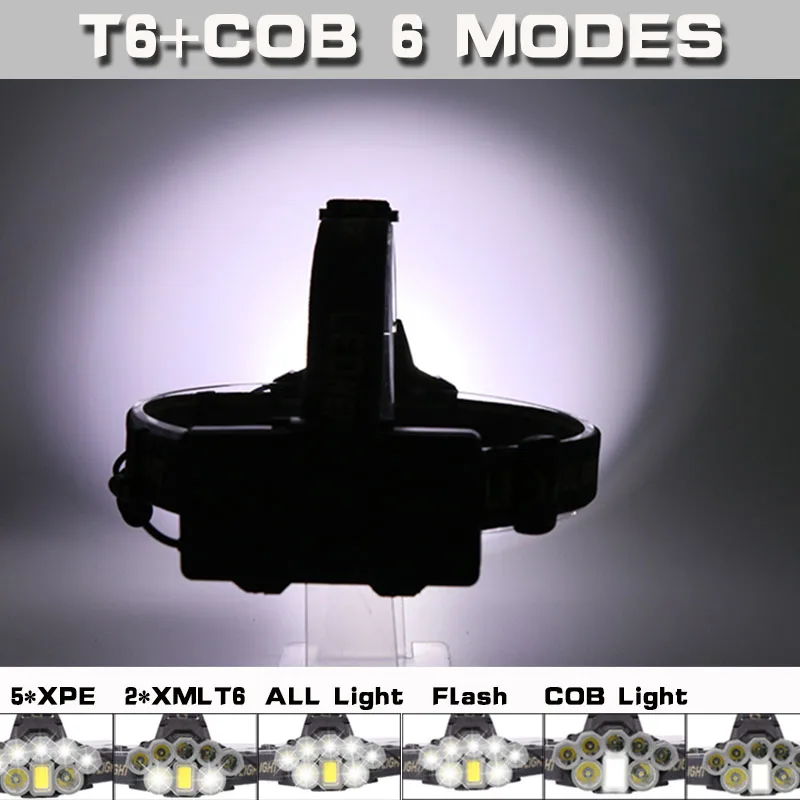 Product Name: USB Rechargeable phare Super lumineux phare 2 * T6 + 5 * Q5 + 1 * COB LED lampe frontale lampe de poche torche lampe frontale lanterne 18650 batterie