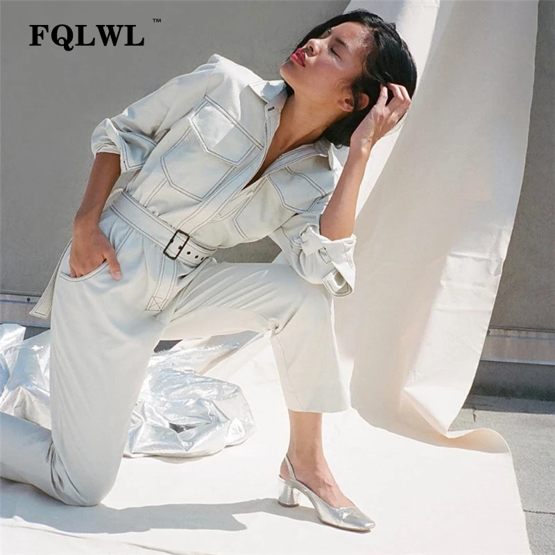 Special Offer FQLWL Sexy Denim combinaison femmes barboteuse à manches longues ceinture noir blanc hiver automne Jeans combinaison femme 2018 Streetwear salopette Discount 50% Today!