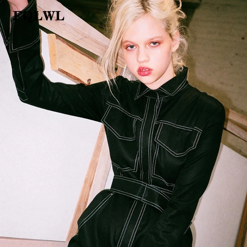 Product Name: FQLWL Sexy Denim combinaison femmes barboteuse à manches longues ceinture noir blanc hiver automne Jeans combinaison femme 2018 Streetwear salopette